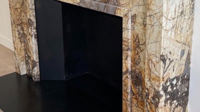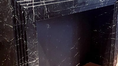 Marbre noir, Nero Marquina, travaillé sur mesure pour la réalisation de cette cheminée. Fabriqué à l'atelier, Made in France